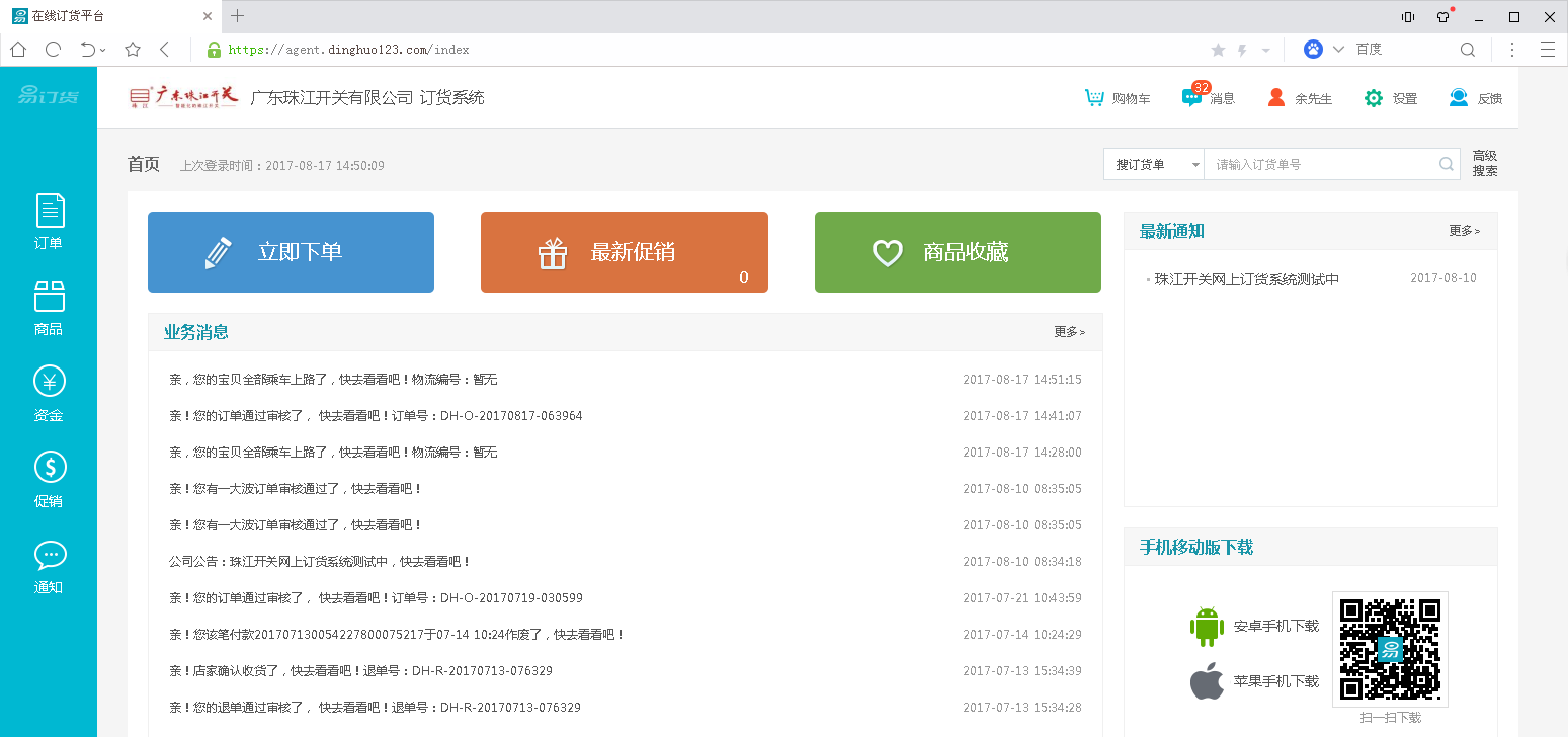 订货系统有三种登录方式:电脑、手机APP、微信。