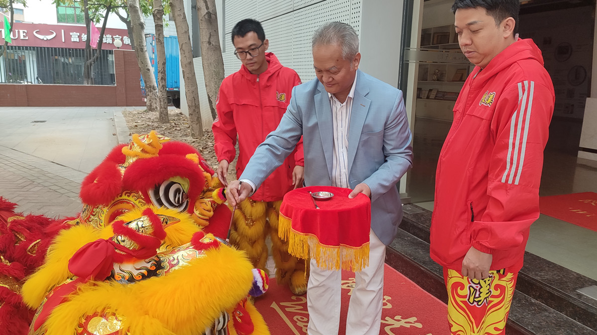 随后举行喜庆热闹的醒狮表演。现场锣鼓喧天,采地青、采高青,精彩表演轮番上演。张柏成带领全体员工与醒狮互动,接头彩、摸狮头,现场欢声笑语、暖意融融。俗话说“摸摸狮子头,万事不用愁”,充满中华传统文化气息的开工仪式,不仅凝聚了团队士气,更象征着珠开在新的一年里,将如骏马奔腾,势不可挡,在激烈的市场竞争中勇立潮头,再创佳绩。